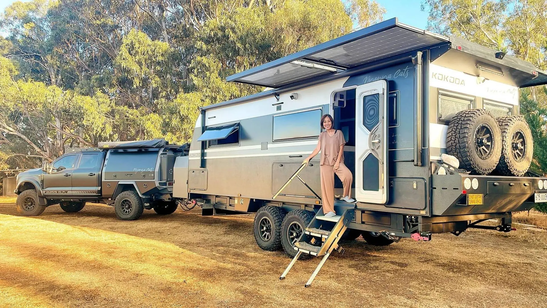 "It all began 18 months ago with a two-week camping trip that we didn’t want to end. Inspired by that experience, my husband set out on a mission to build the ultimate touring rig, collaborating with some of the best in the industry. Huge thanks to Kokoda for making this dream a reality. From waking up to bedtime, we’re loving every lazy, carefree day on the road. Sweet dreams, exploring, dreaming, and discovering in our home on wheels. Another day, another adventure—it’s truly the journey of our lifetimes!" Catherine & Andrew